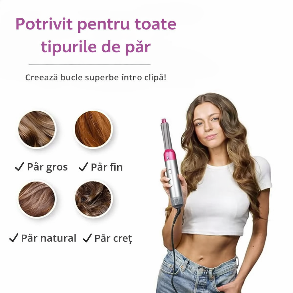 Da. Veliora 5-în-1 este conceput pentru păr fin, gros, natural sau creț, oferind rezultate sigure și uniforme.